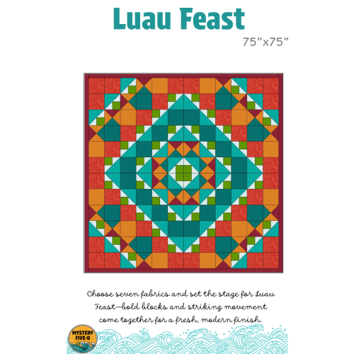 Choose five fabrics and map your Luau Feast—dynamic blocks and flowing movement make every stitch part of the journey. Luau Feast was originally introduced as the third mega-mystery quilt in the Mystery Five-0 series. As a participating Mystery Five-0 retailer, we are able to offer this